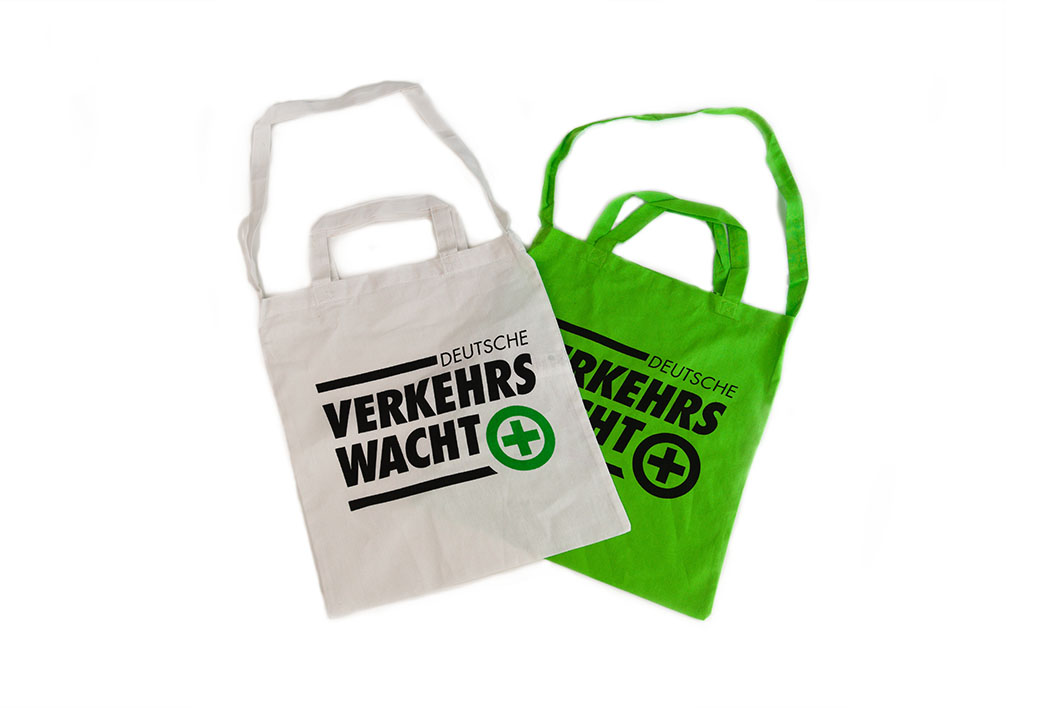 Mit “Verkehrswacht” unterwegs. Baumwolltasche mit zwei kurzen Tragegriffen. Ca. 42 x 38 cm. Mit Logoaufdruck Deutsche Verkehrswacht, zweifarbig.